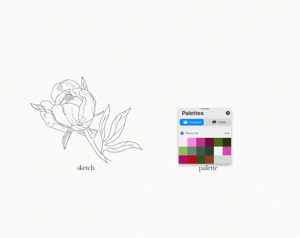 You can download my sketch and color palette for Youtube tutorial "Procreate Watercolor Peony Tutorial - Step by step - Drawing tutorial by OwlAsya":