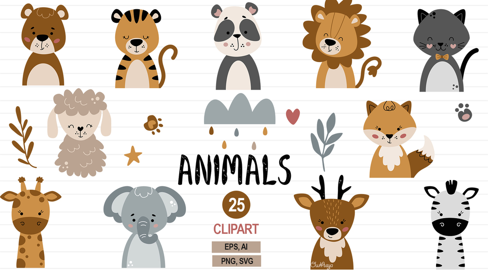 Animals svg, Boho animals clipart, Bohemian baby svg, Lion svg, Deer svg, Cat svg, Zoo clipart, Panda svg, Fox svg, Nursery printable,