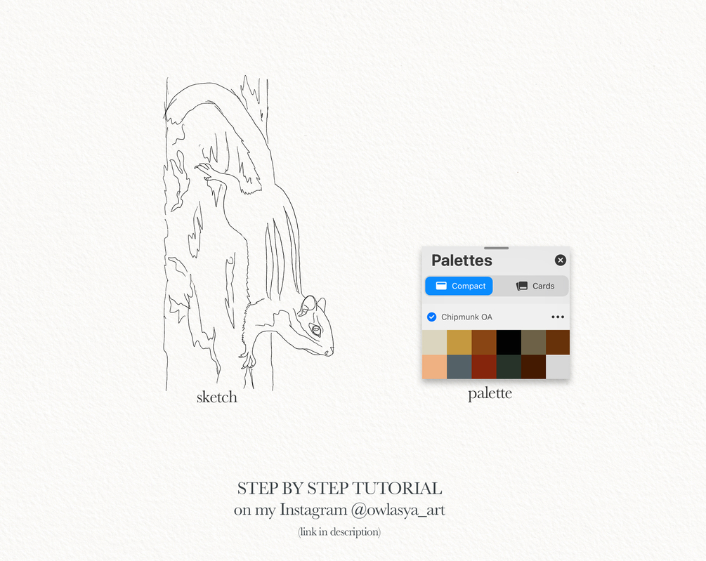 You can download my sketch and color palette for Instagram tutorial "Chipmunk. STEP BY STEP":