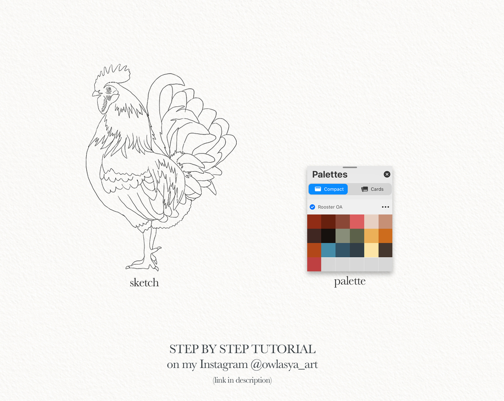 Free Procreate Sketch and Color Palette - Rooster STEP BY STEP