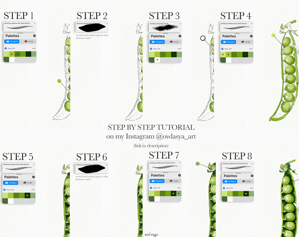 You can download my sketch and color palette for Instagram tutorial "Peas. STEP BY STEP":